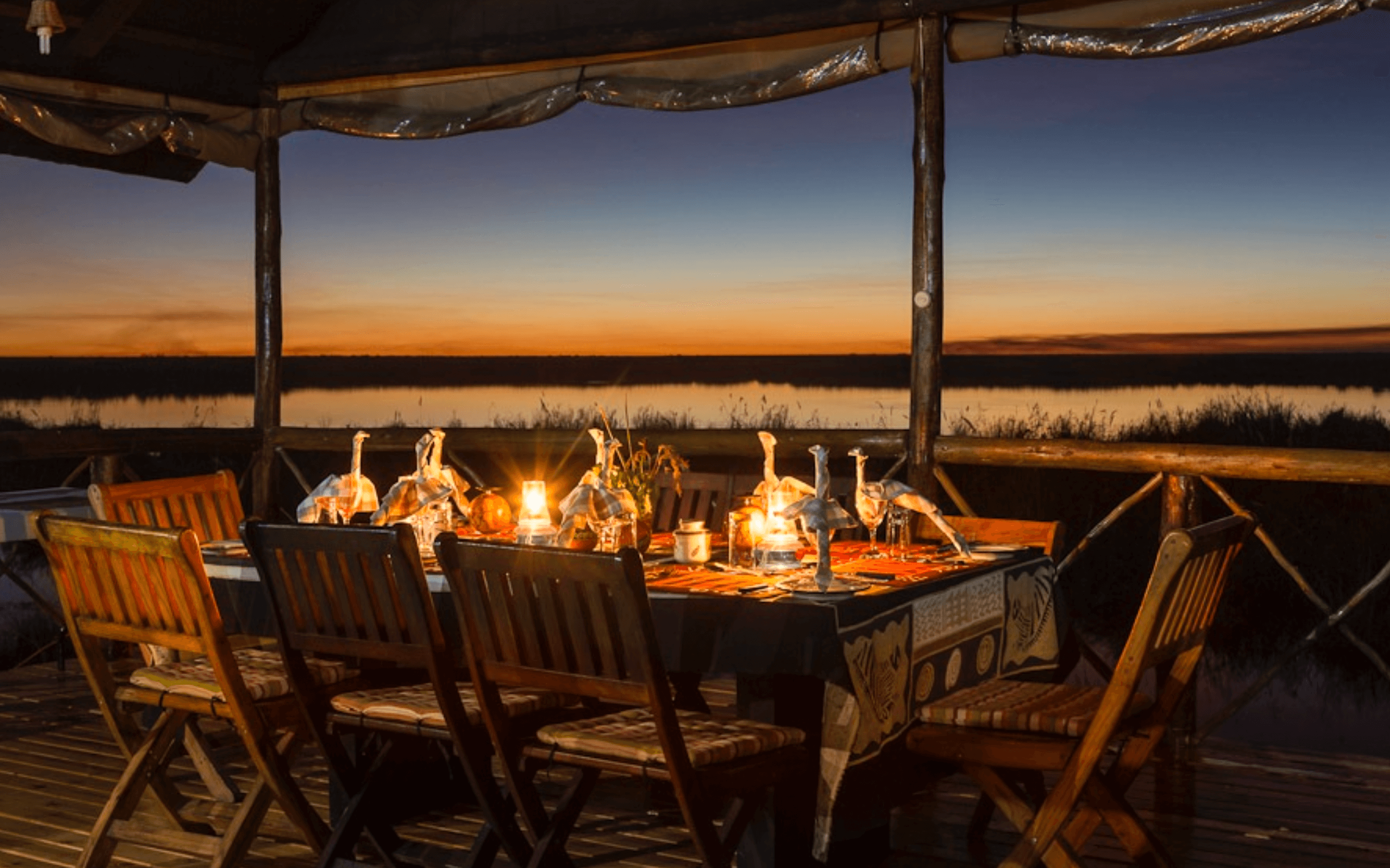Enjoy expansive wooden decks overlooking the meandering Linyanti River and its surrounding floodplains. Witness elephants and breathtaking birdlife in the vicinity.