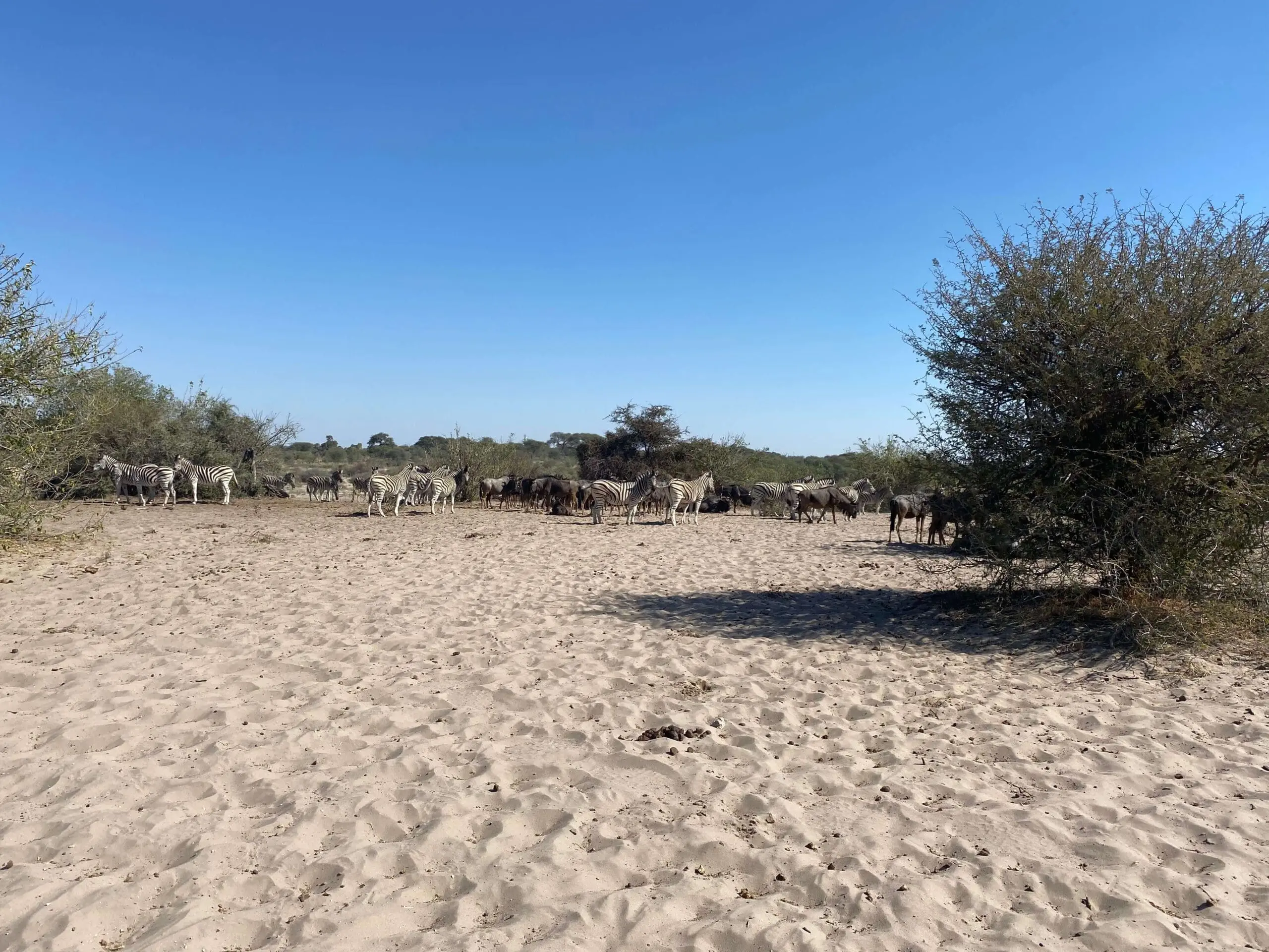 The great news is that if you visit us at Khumaga Campsite, the zebra migration between the Boteti River and the Makgadikgadi Salt Pans can be observed year-round and is dependent on water availability and the presence of grasses. Once these water sources also dry up and grass is no longer available, the wildlife resides along the Boteti River. The water sources along the Boteti are in a seemingly constant battle, with zebras, gnus, elephants, and other wildlife competing for water.
