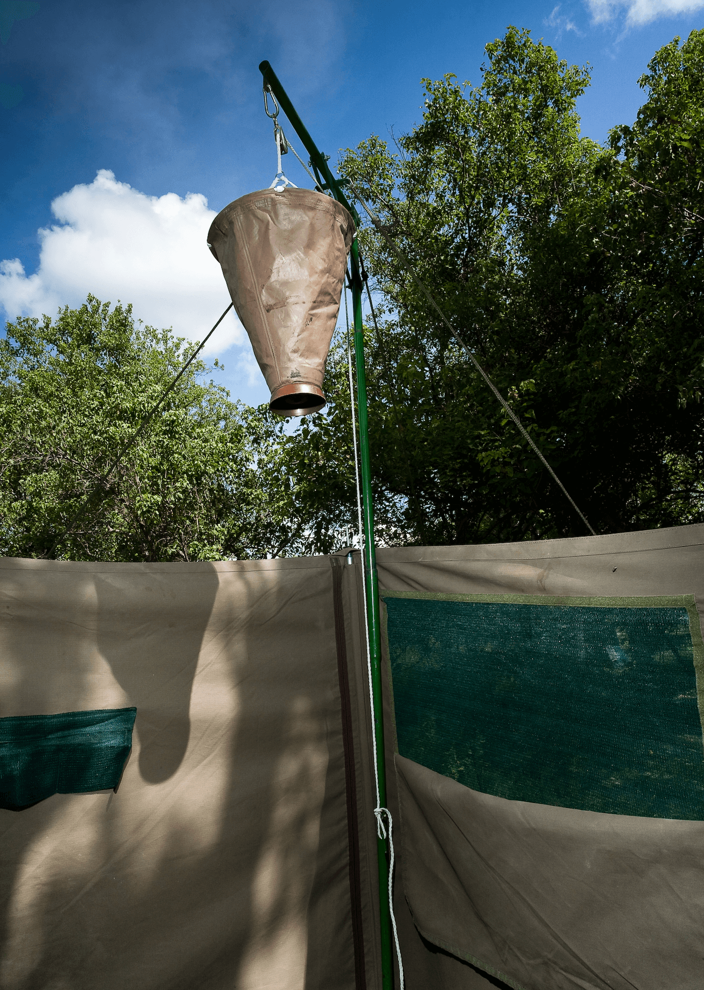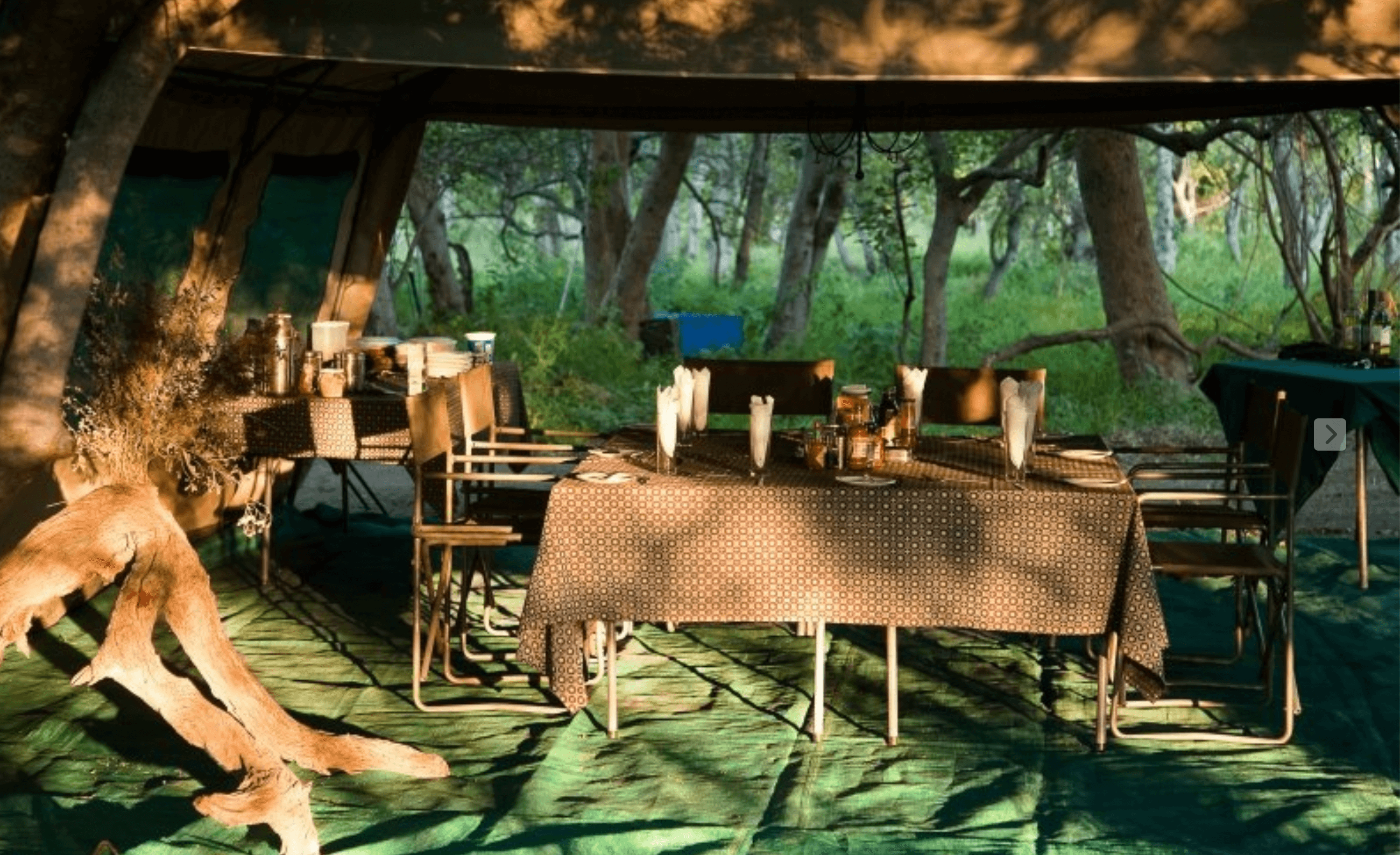 Accommodation consists of Dome Tents (3 meters X 3 meters) with rustic en-suite facilities, including a bucket shower and thunder box. All bedding is provided, and guests gather in a covered dining area or lounge, enjoying meals under the shade of majestic trees or around the campfire.